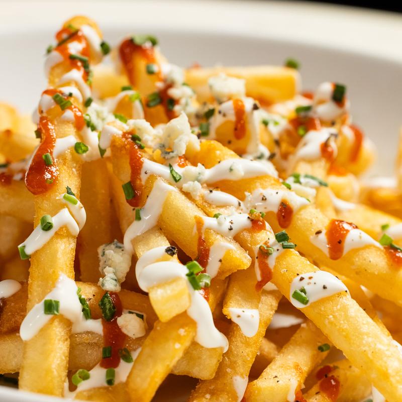 House blue cheese dressing, crumbled bacon, sriracha, chives