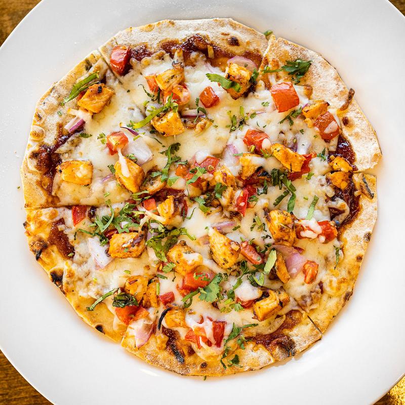 Bourbon BBQ sauce, mozzarella, Red onion, grilled chicken, cilantro, smoked sea salt